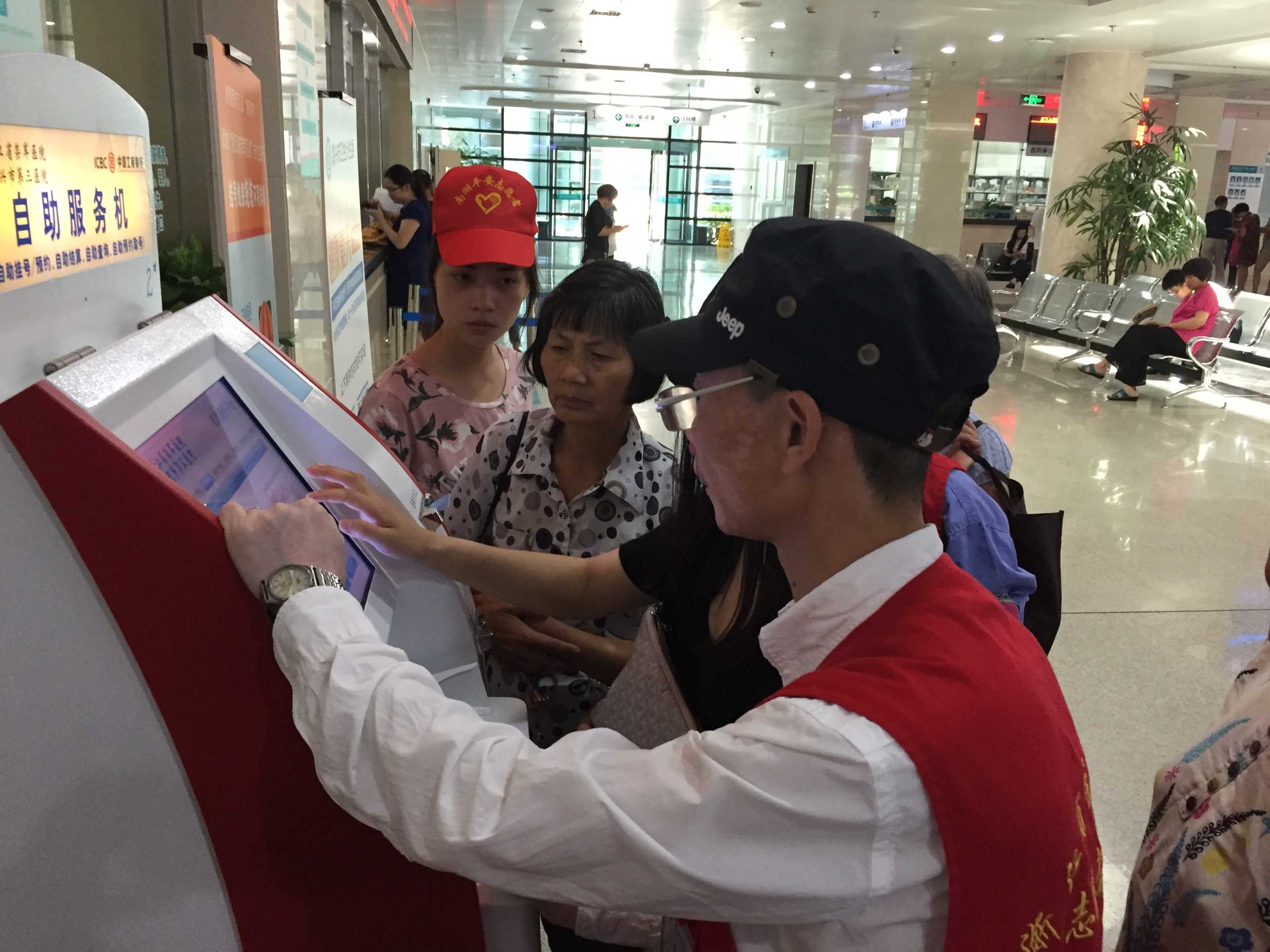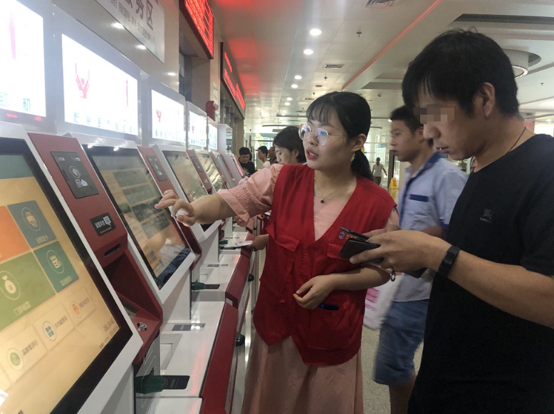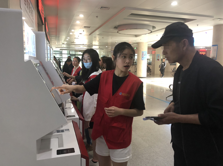 門診就醫(yī)有難題,患者們習慣了第一時間尋求志愿者的幫助。操作自助機,就診樓層指引,報告單打印……門診的各個角落都分布著紅色的身影,成為門診的一道亮麗風景線。