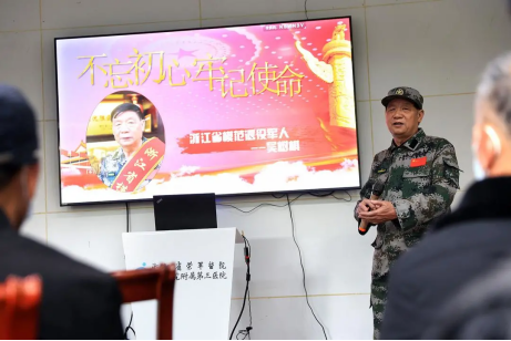 2021年11月30日,來(lái)自金華浦江縣40余名退役老兵來(lái)到浙江省榮軍醫(yī)院開啟短期療養(yǎng)。在康復(fù)樓報(bào)告廳,全省模范退役軍人吳樹棋為同行戰(zhàn)友們帶來(lái)了一場(chǎng)演講,講述自己作為退役軍人的初心故事、責(zé)任與擔(dān)當(dāng)。脫下戎裝,奉獻(xiàn)地方,他們秉承軍隊(duì)的光榮傳統(tǒng),在不同的崗位繼續(xù)發(fā)熱發(fā)光。